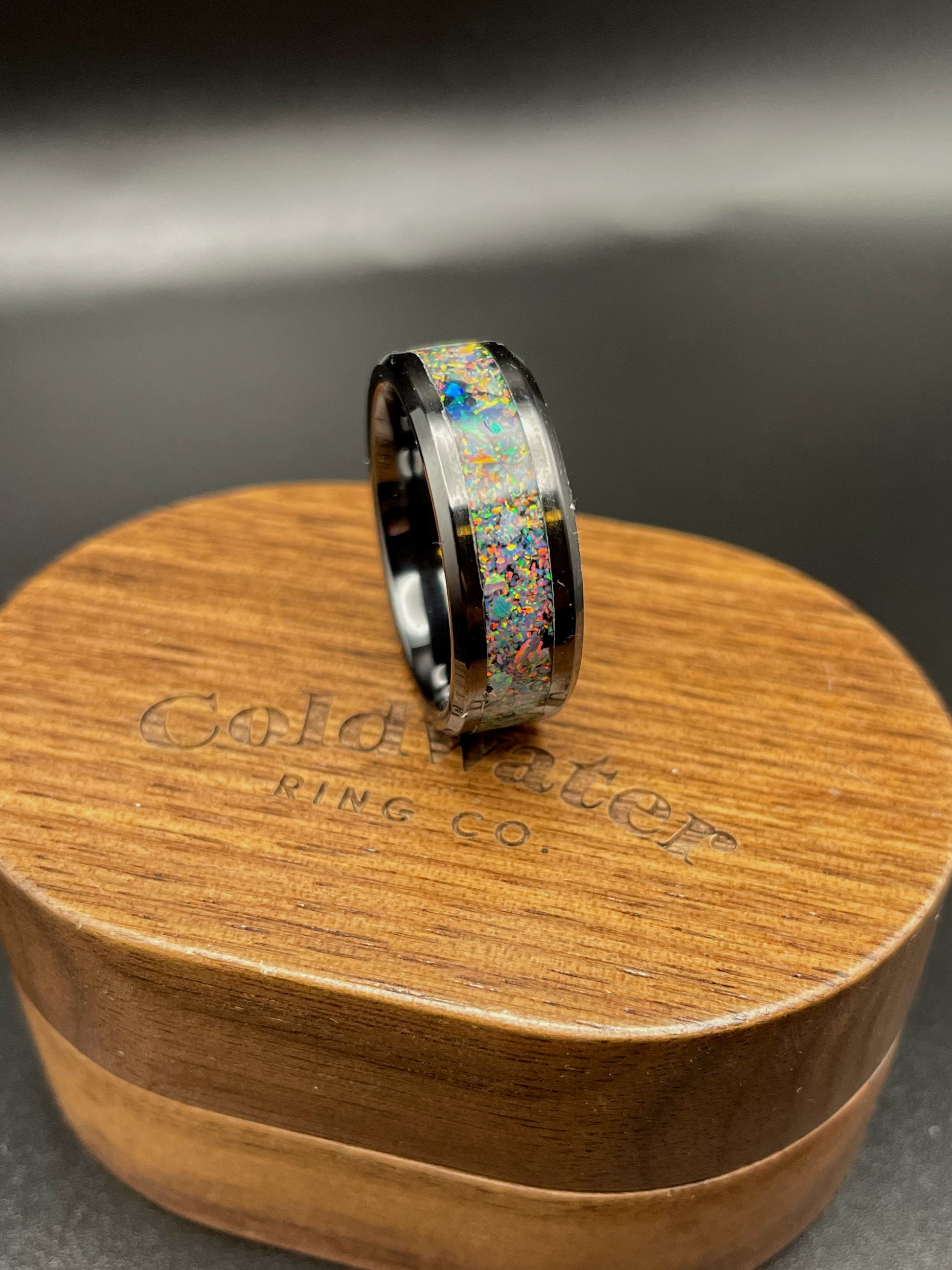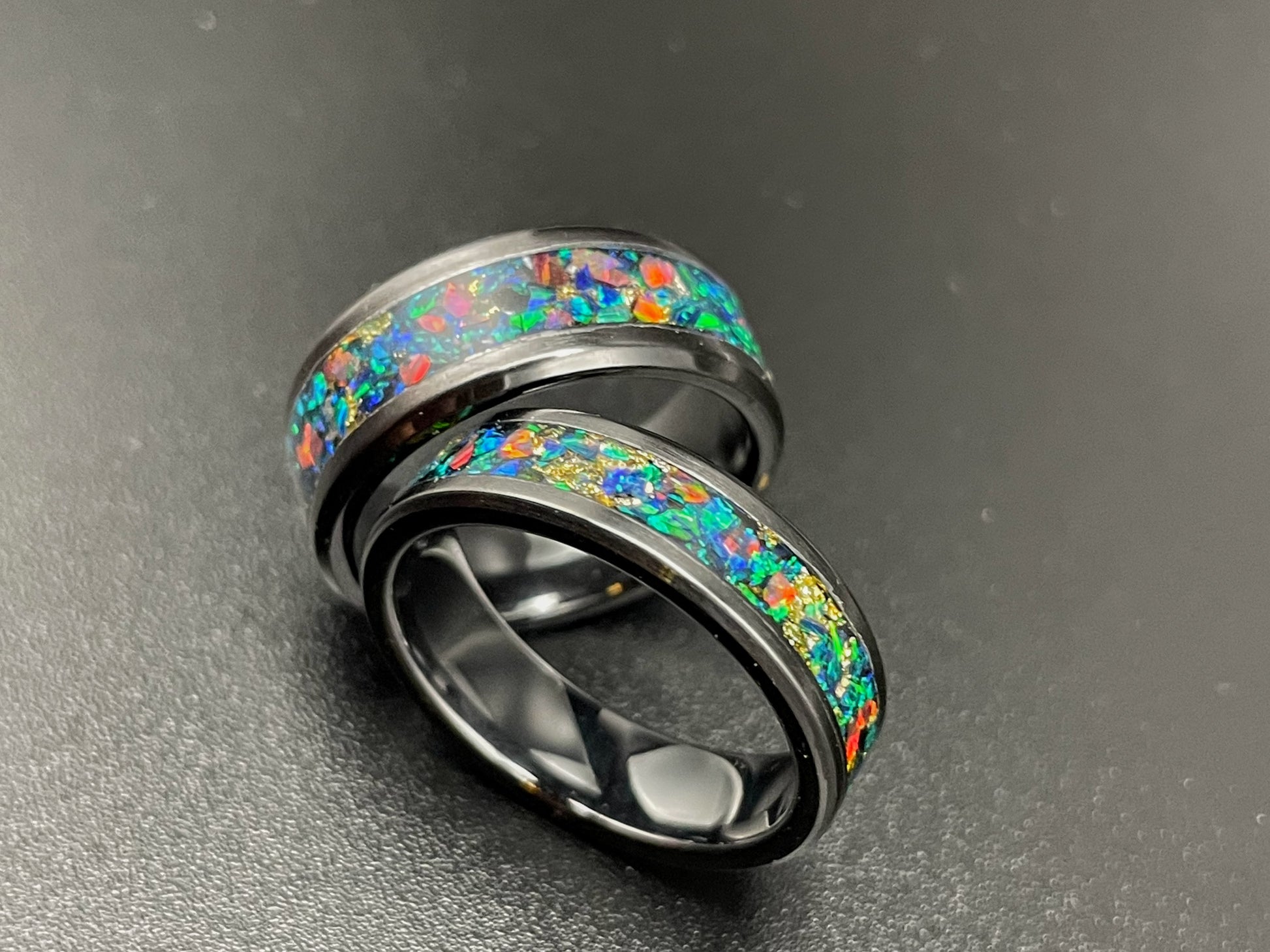 Introducing our exquisite Customizable Opal Glow Ring, meticulously handcrafted to create a truly unique and personalized piece. With thousands of possible combinations, each band is a work of art, making it the perfect choice for an anniversary gift, men's wedding band, or a captivating fashion accessory.