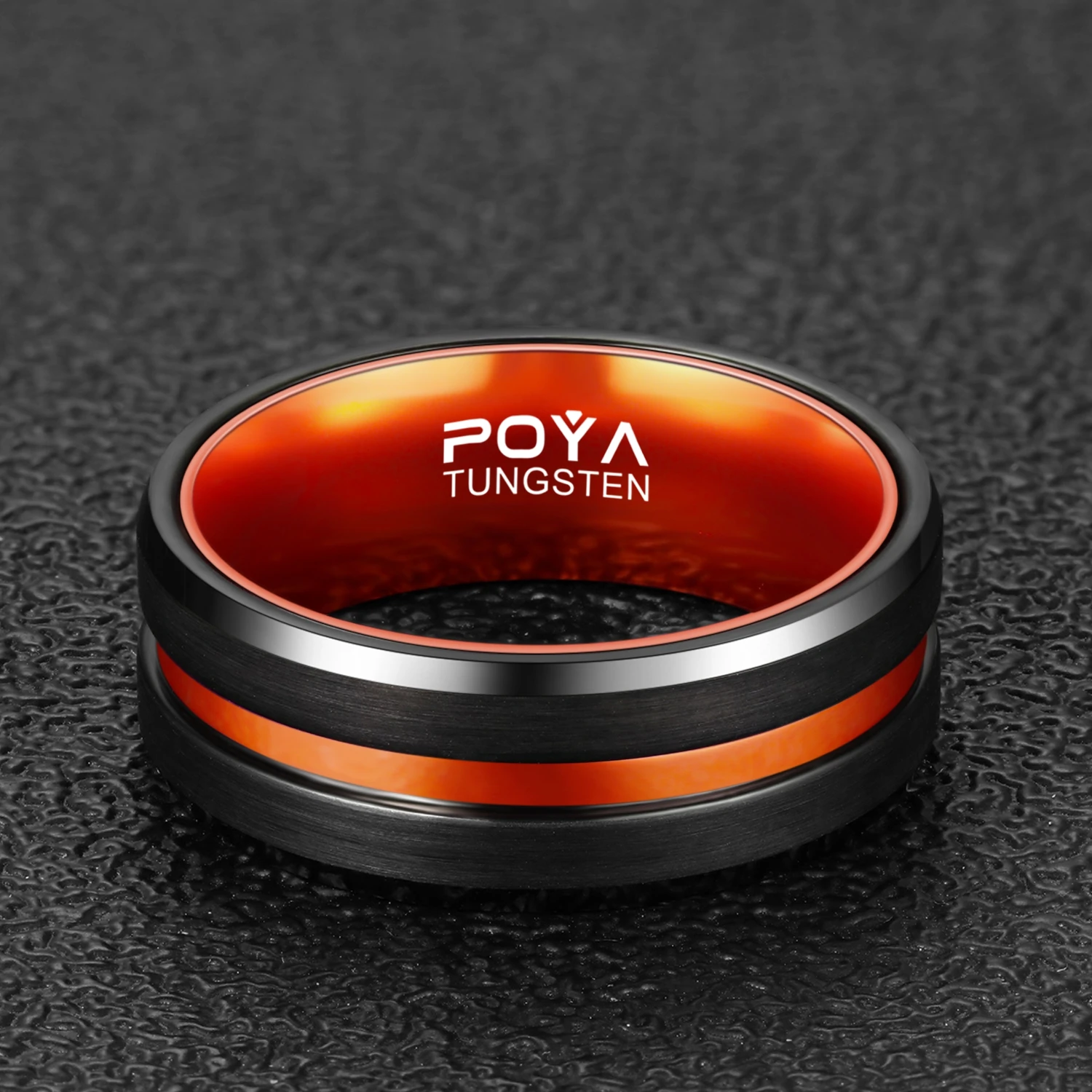 POYA 8 mm Black Tungsten Ring With Orange Aluminum Liner Interior Men's Women's Wedding Band